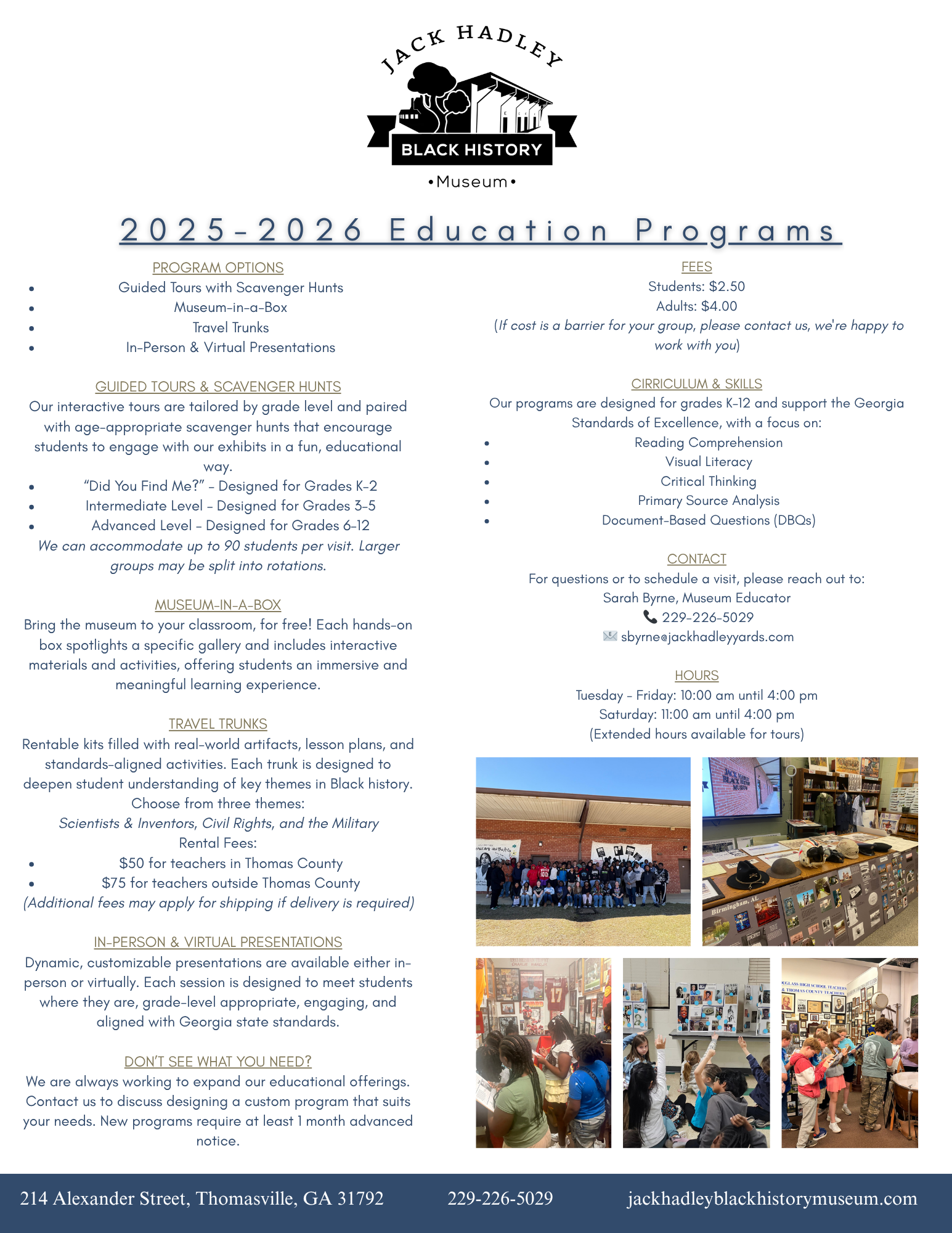 We’re always adding to the overall experience of the Jack Hadley Black History Museum, so make sure to check back and see what’s new.